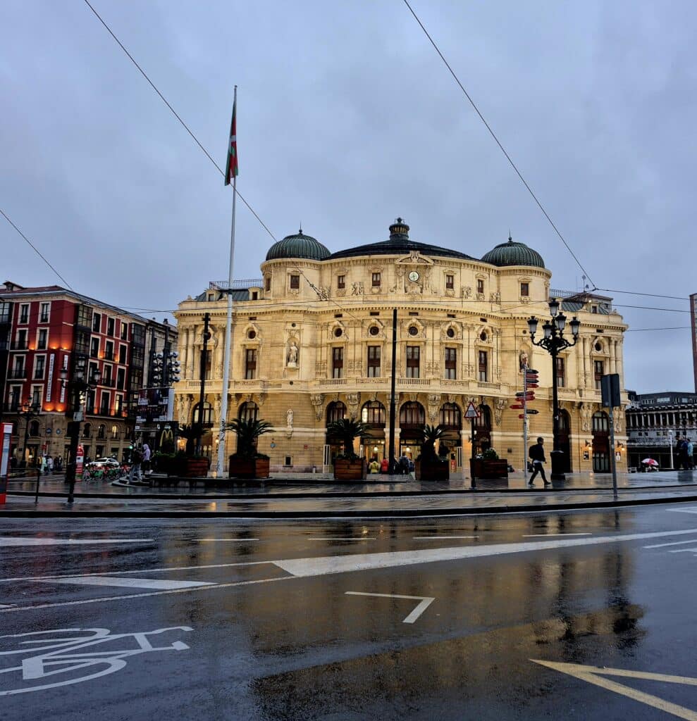 Desde la plaza, en apenas un minuto llegarás al Teatro Arriaga, uno de los edificios más bonitos de Bilbao. El exterior es espectacular, con su estilo neobarroco y su presencia imponente frente al Arenal.
