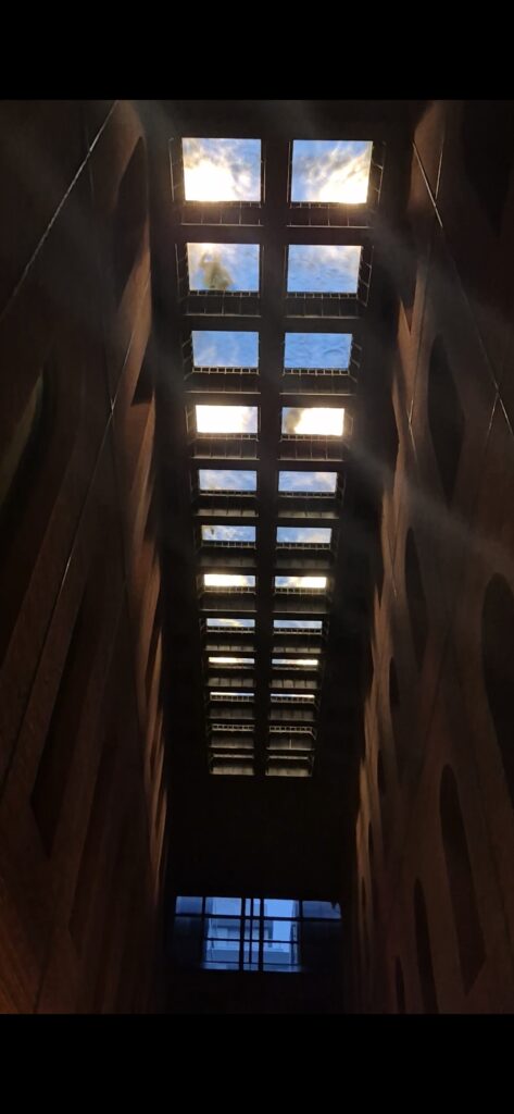 Nada más entrar, el edificio impone: un gran espacio diáfano sostenido por 43 columnas diferentes, cada una con un estilo, material y forma propia. Egipcias, clásicas, minimalistas, geométricas… Es un juego visual que invita a caminar entre ellas y descubrir los detalles, perfecto para adolescentes curiosos que se fijan en lo distinto y lo inesperado.