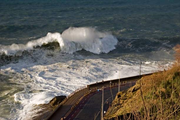 El “muro de Sagüés” está al final de la Zurriola. Es uno de los lugares preferidos por los donostiarras para ver la puesta de sol. El ambiente juvenil, con cuadrillas, skaters y surfistas, engancha mucho a los adolescentes.