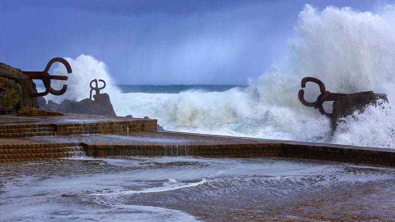 El Paseo Nuevo rodea el Monte Urgull pegado al mar. Los días de oleaje fuerte es impresionante ver cómo las olas saltan por encima del muro. Al final del recorrido está la escultura de Oteiza, un gran cubo abierto que parece enmarcar el horizonte. Es un paseo distinto, que engancha sobre todo a los adolescentes porque tiene ese punto de adrenalina con el mar golpeando tan cerca.